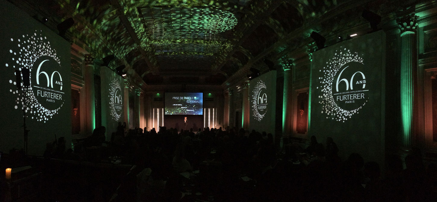 Une fois transformée, la salle de Bal Belle Epoque de l'Hôtel du Palais est méconnaissable… les projections encerclent les participants, les tableaux lumineux offrent un cocon de verdure dans lequel il est doux de se laisser aller...